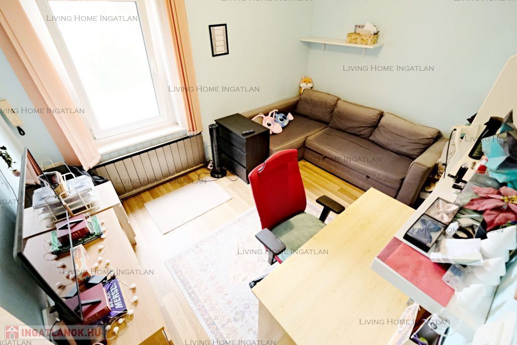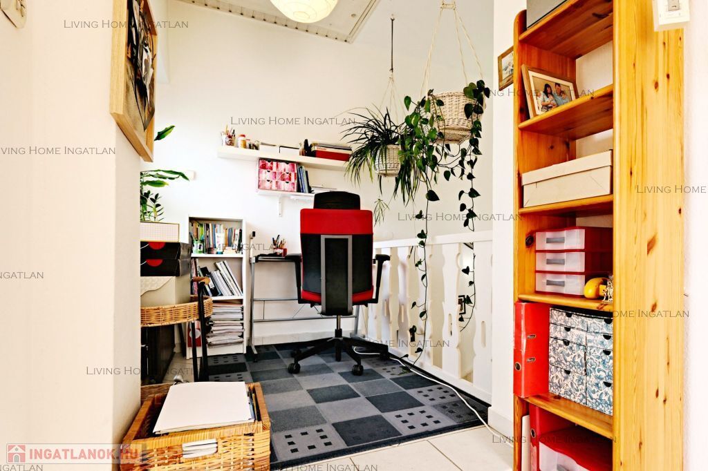 Emelet: 2 szoba, nappali, dolgozó sarok, fürdőszoba, WC, gardrób, erkély.