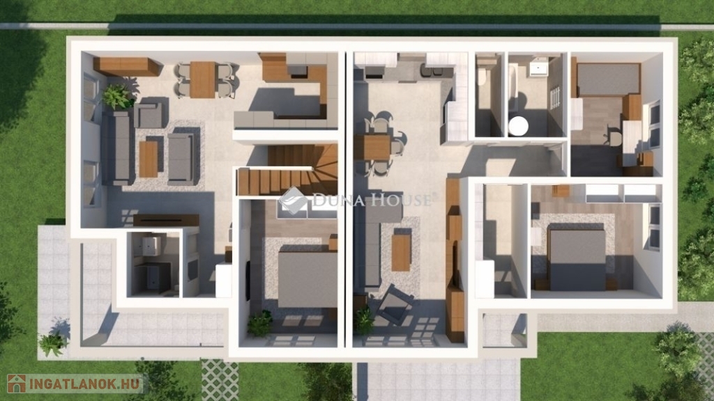 Eladó Szigethalmon csendes utcában egy kivételes, új építésű, két szintes, 90 nm-es iker családi ház hátsó része!