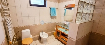 A fűtésről egy gáz + vegyes tüzelésű kazán gondoskodik radiátoros hőleadókkal, míg a melegvízellátás villanybojlerek segítségével megoldott. Az 1986-ban téglából(30cm), betonfödémmel épült ház földszinti és emeleti része 2 generáció különélésére nyújt lehetőséget.