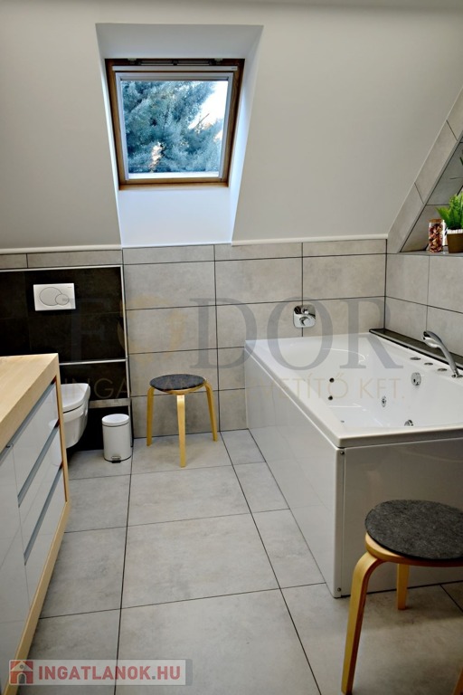 • Fürdő mindkét szinten: alul épített zuhany és bidés WC, felül hidromasszázskád víz- és levegőfúvókákkal, igazi wellness-élmény otthon.