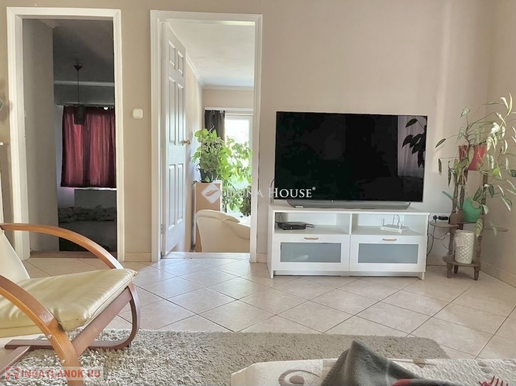 Az ingatlan összközműves, a kert locsolását pedig fúrt kút segíti.