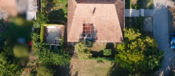 Az udvaron van egy rendezetlen funkciójú épület (48 m2), aminek már levették a tetejét és az volt a terv, hogy csinálnak még egy dupla garázst, de ideális lehet egy külön garzon kialakítására is, ha valaki több generációban gondolkodik.