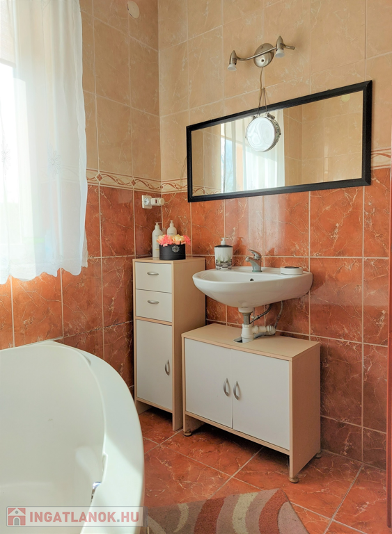 - összesen 2 fürdőszoba (kád lent és tusoló fent) + 1-1 WC az alsó és felső szinten