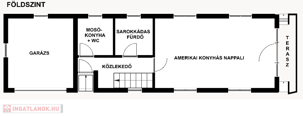 - A FÖLDSZINT HELYISÉGEI: 8,54 nm – es közlekedő, 34 nm - es nappali, 5,2 nm - es sarokkádas fürdőszoba, 4,9 nm - es mosókonyha- WC-vel + 18,5 nm - es "fűtött" garázs kézi nyitással + a nappaliból és az udvar felől megközelíthető 8,17 nm - es terasz