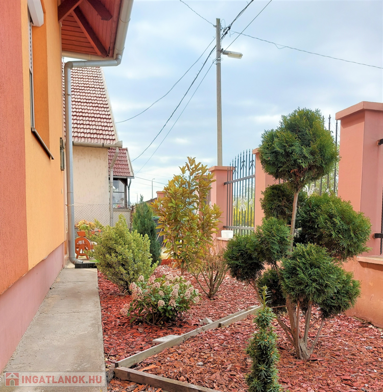 - térkövezett kocsibeálló + 2 kovácsoltvas jellegű kerítés és nagykapu (egy a kocsibeállónál, egy a garázsnál)