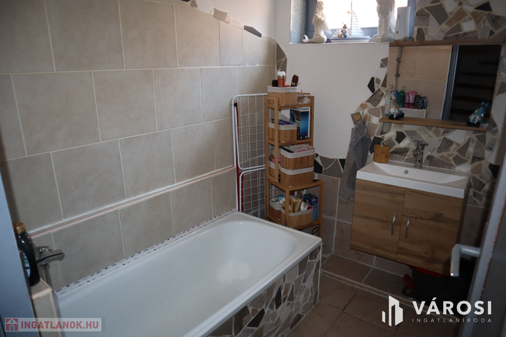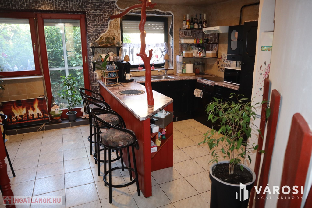 Az ingatlanba lépéskor egy nagy előtér várja Önt/Önöket, amiből nyilik a szépen kialakitott konyha és étkező, illetve itt egy WC is található.