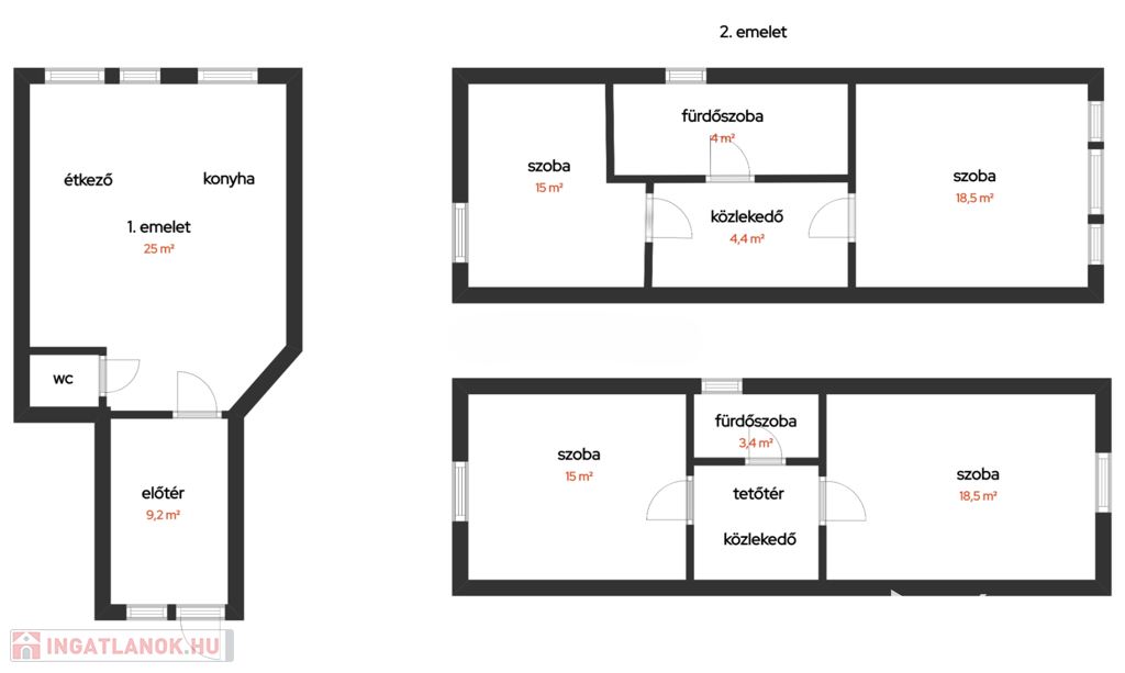 - Külön fürdők és WC a maximális kényelem érdekében