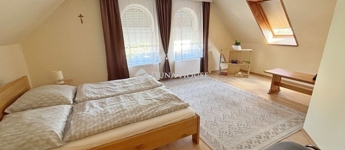 Az emeleten három nagy méretű szoba, egy kisebb dolgozószoba, egy hobbi helyiség erkéllyel, és egy frissen felújított fürdő található.