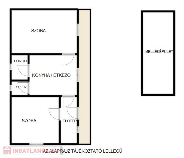 Az ingatlanon található egy 60 nm-es alapterületű felújítandó, de szerkezetileg jó állapotú családi ház.