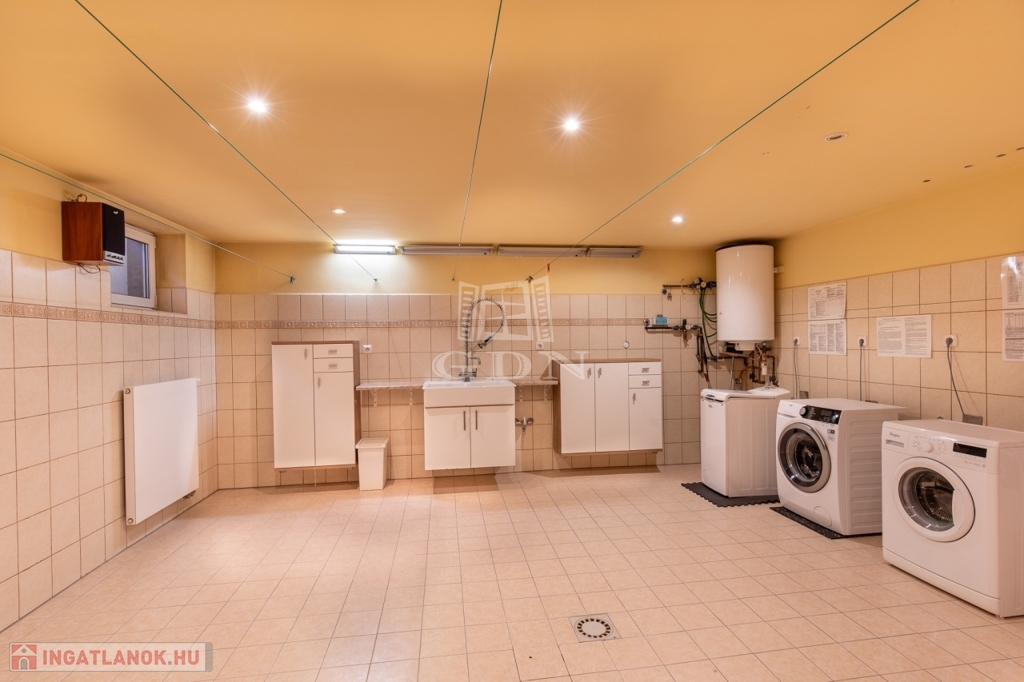 A pinceszinten wellnessrészleg került kialakításra zuhanyzóval, jakuzzival, emellett helyet kapott a gépészeti egység és egy külön mosó-szárító helyiség is.