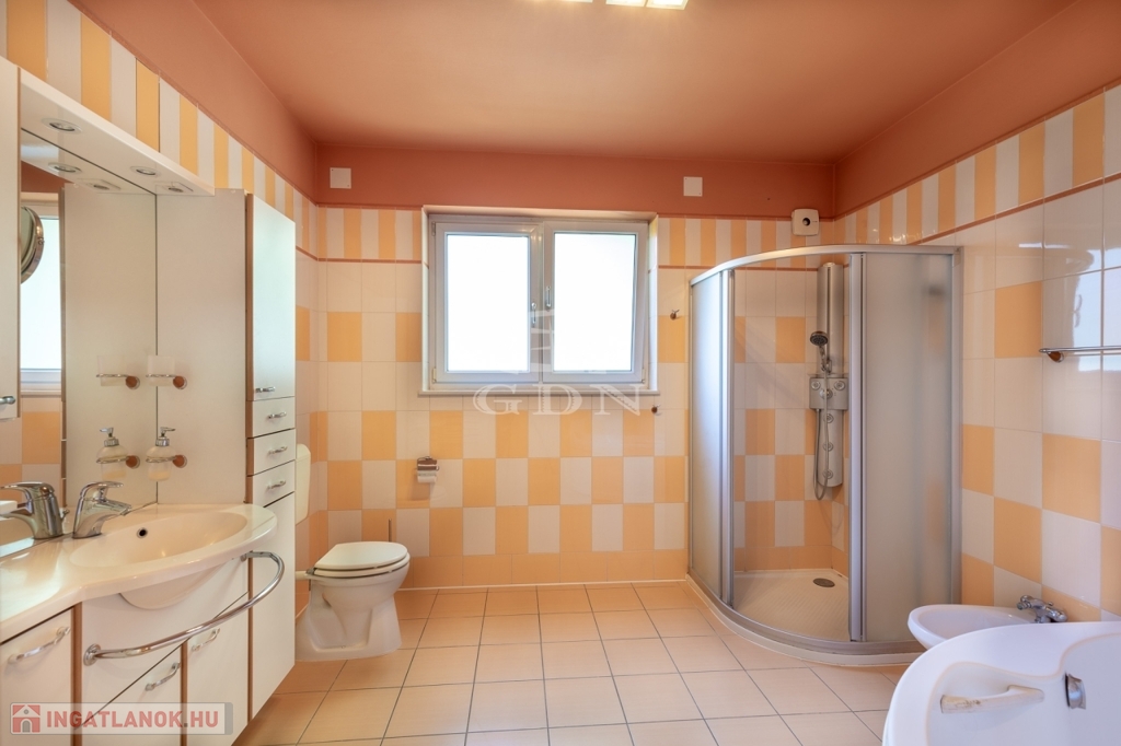 az emeleten négy világos hálószoba kapott helyet, valamint egy zuhanyzós fürdőszoba és egy különálló vizes helyiség is szolgálja a kényelmet. Ugyanitt található a garázs felett kialakított, 60 m²-es beépítésre előkészített tetőtér, amely akár egy külön bejáratú lakássá is átalakítható – ideális többgenerációs együttéléshez vagy irodai funkcióra.