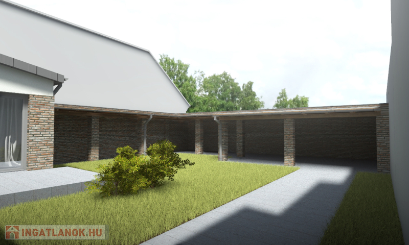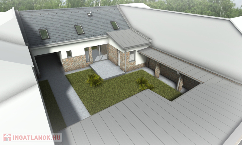 Az építmény egylakásos,önálló telken álló lakóépületként került kialakításra,zárt belső udvarral,2 fedett .