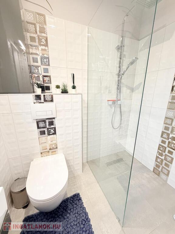 Az alsó szinten található még egy zuhanyzós fürdőszoba, egy speiz és egy praktikusan kialakított konyha.