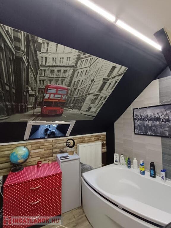Innen tovább lépve érünk a konyha étkező részbe folyosóval elválasztva pedig a fürdő és külön toalett lett kialakítva. 2 teljes értékű külön bejáratos szoba található még az alsó szinten.