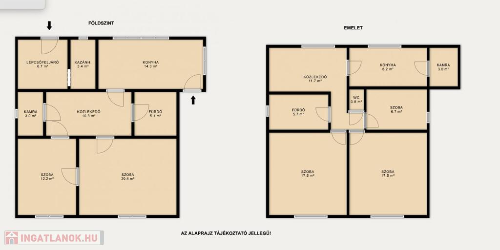 • Nagycsaládosoknak: Két generáció kényelmesen elfér, saját konyhával és fürdővel szinteken elosztva.