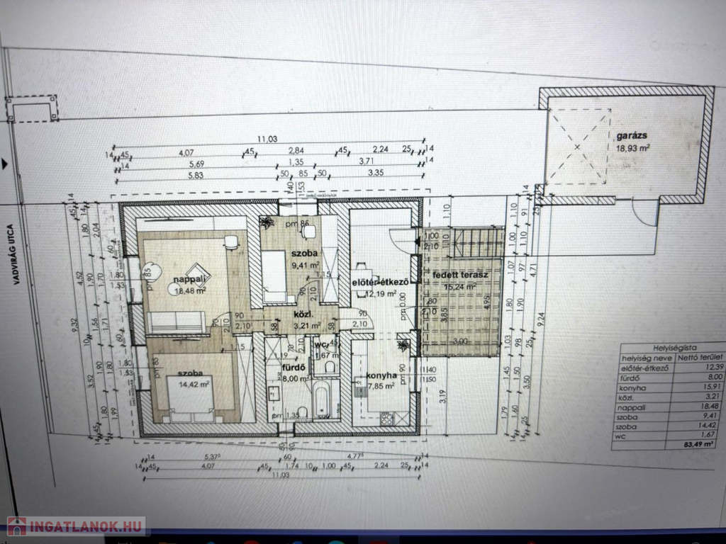 3 szoba, konyha, fürdőszoba, külön mosdó, előtér összesen 84m2, terasz 15 m2. Pinceszinten gépészeti helyiség, tárolókkal 21 m2
