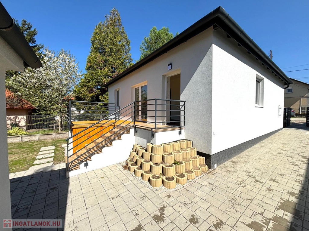 Az udvaron egy 19 m2 szintén teljesen felújított garázs található, elektromos kapuval felszerelve. A garázs tetőteres rakodóteret is kapott. Az épületet térkövezett úton érhetjük el, mely legalább még 2-3 autó udvari beállására alkalmas.