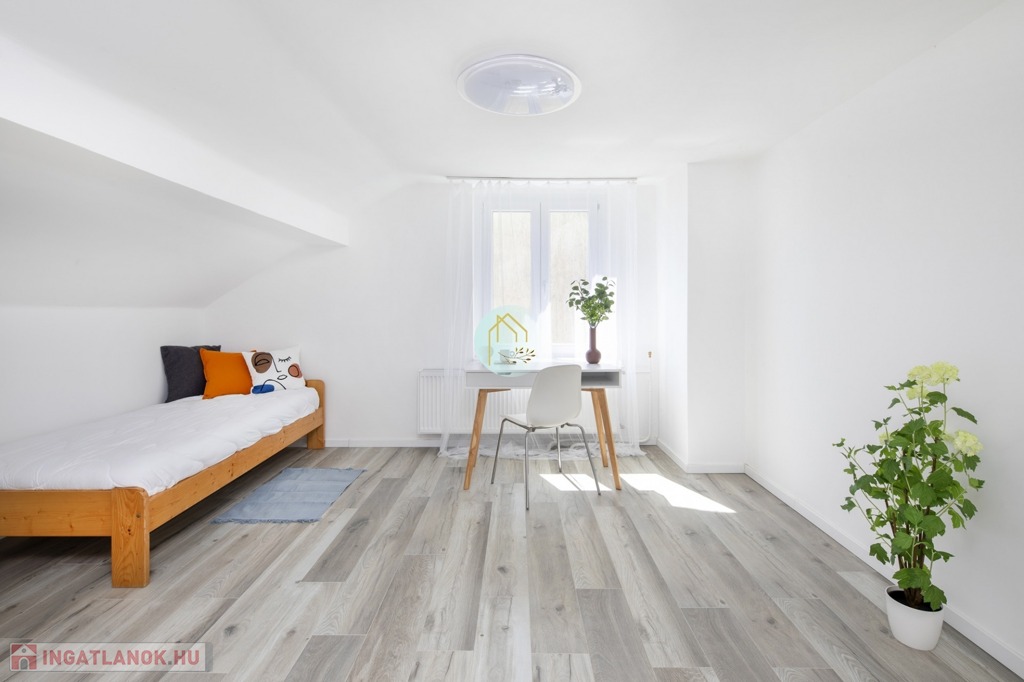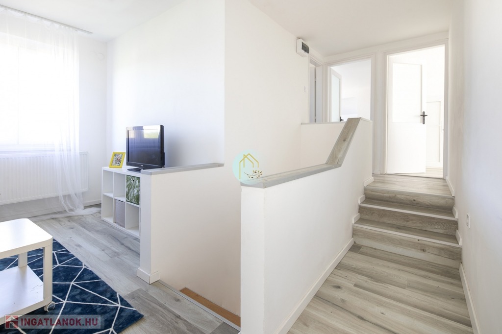 Eladó Tatabánya Kertvárosban egy háromszintes bruttó 200 nm-es, hatszobás családi ház. Teljes műszaki és esztétikai felújítást követően kínáljuk megvételre a téglából épült házat, amely egy 778 nm sík telken helyezkedik el.