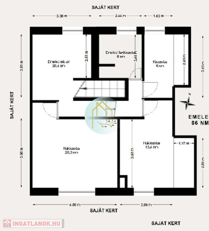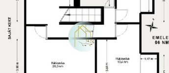 -Emeleten 3 külön hálószoba egy közösségi tér, fürdőszoba-Wc.