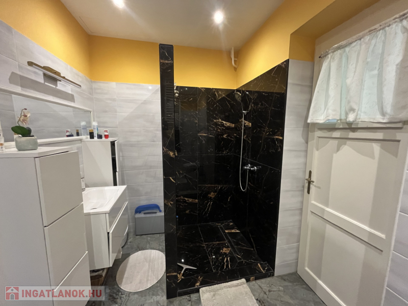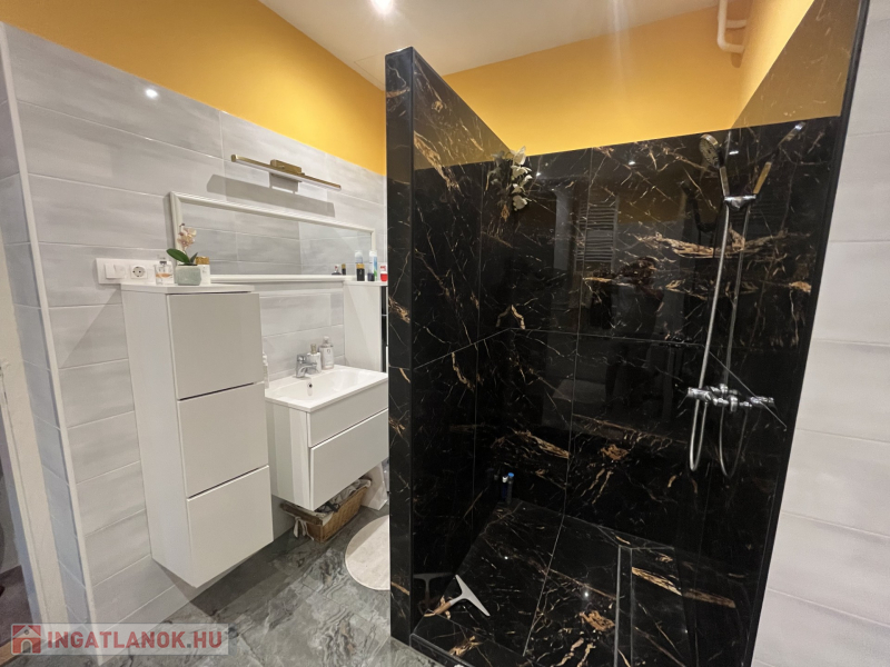A fürdőszoba nagyon izléses, modern kialakítású, ami kényelmet és praktikusságot nyújt.