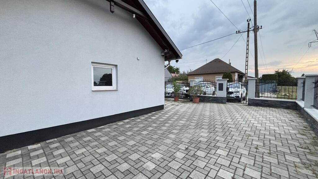 -garázs (28 m²) + több autó számára térkövezett beálló