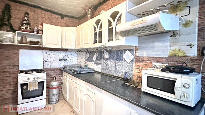 Azonnali döntésre váró lehetőség! Stabil tégla szerkezetű, 80 m²-es ház 3 külön nyíló szobával, étkezővel, konyhával és fürdővel.