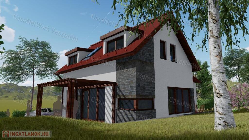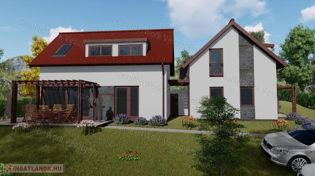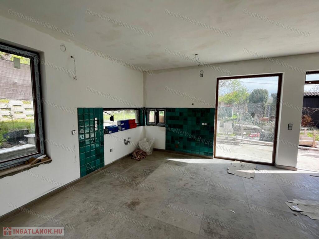 - emelet: háztartási helyiség, egy toalett, három szoba rálátással a környező tájra és a Balatonra