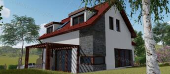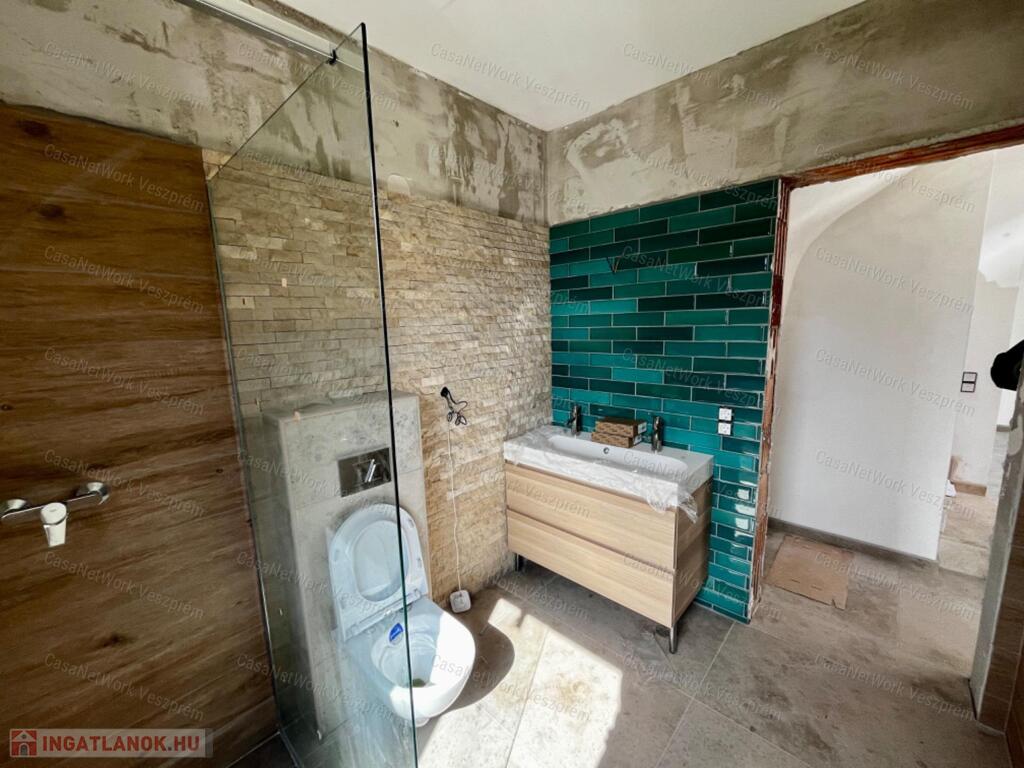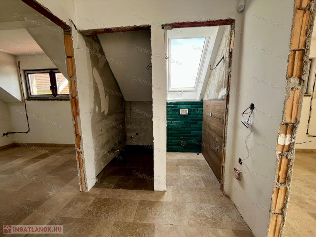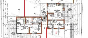 - földszint: amerikai konyhás nappali egy 21 m²-es és egy 12 m²-es teraszhoz kapcsolódva, fürdőszoba és toalett, egy szoba