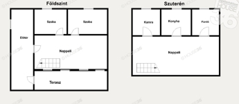 -szuterénben : nappali-étkező, kamra, konyha, fürdőszoba