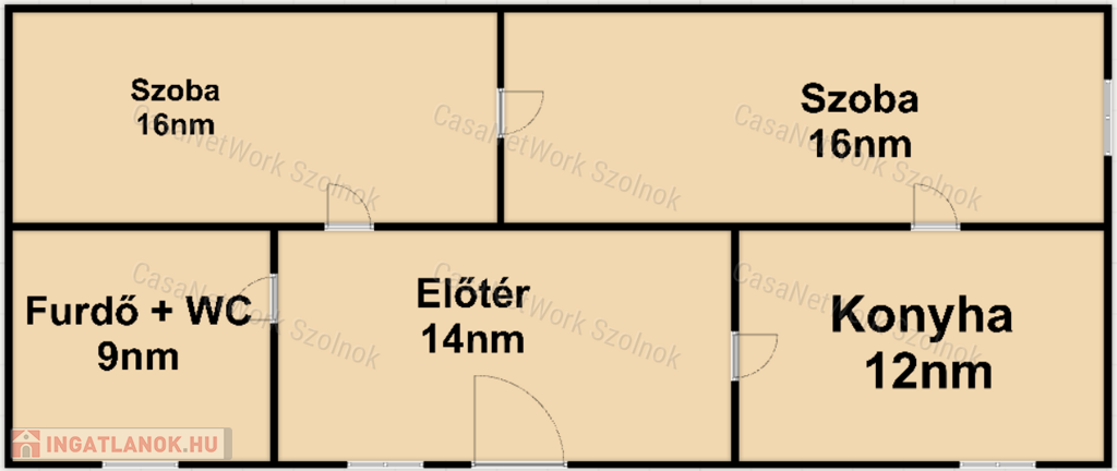 - helyiségek : fürdőszoba, 2 szoba, konyha, előszoba