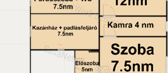 - rendelkezésre álló helyiségek: 4 szoba, 1 félszoba, kamra, konyha, kazánház, fürdőszoba + WC, előszoba