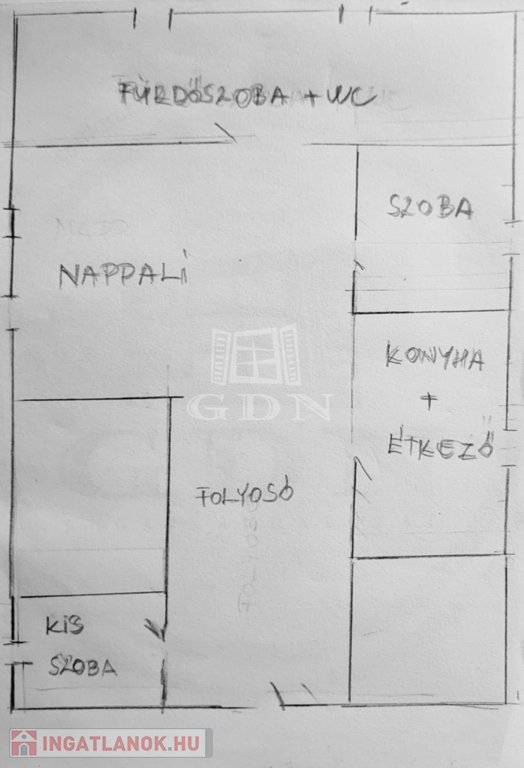 Helyiségek: konyha-étkező, nappali, 1 hálószoba, 1 kisebb szoba, fürdőszoba + WC