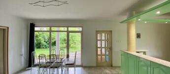 Az amerikai konyhás nappali háromméteres nagy üvegfelületű ablakaival világos, innen mehetünk ki a 28 nm-es teraszra, mely közvetlen kertkapcsolatos így minden nap a természet látványa fogad, ahonnan a madárdal és a tücsökciripelés teszi felejthetetlenné a nyári estéket.