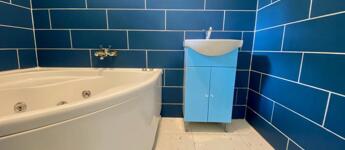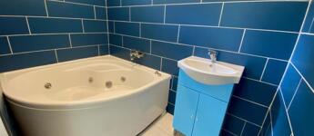 A fürdőszoba sarokkáddal, külön nyíló WC-vel, szellőztethető ablakkal rendelkezik.