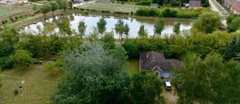 A 10 631 nm-es telken egy 1998-ban épült, valaha szebb napokat látott 97 nm-es családi ház található, amely tágas, világos tereivel és otthonos kialakításával ideális otthona lehet azoknak, akik nyugalomra, harmóniára és természetközeli életre vágynak. Legközelebbi szomszéd egy gyönyörű, rendezett horgásztó.