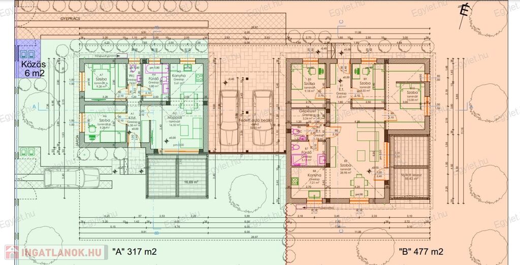 Minden telken, társasházi okirattal, betétesített helyrajzi számon 2 lakóegység kerül kialakításra. (Egyedi megoldás is kérhető személyes konzultáció során!)