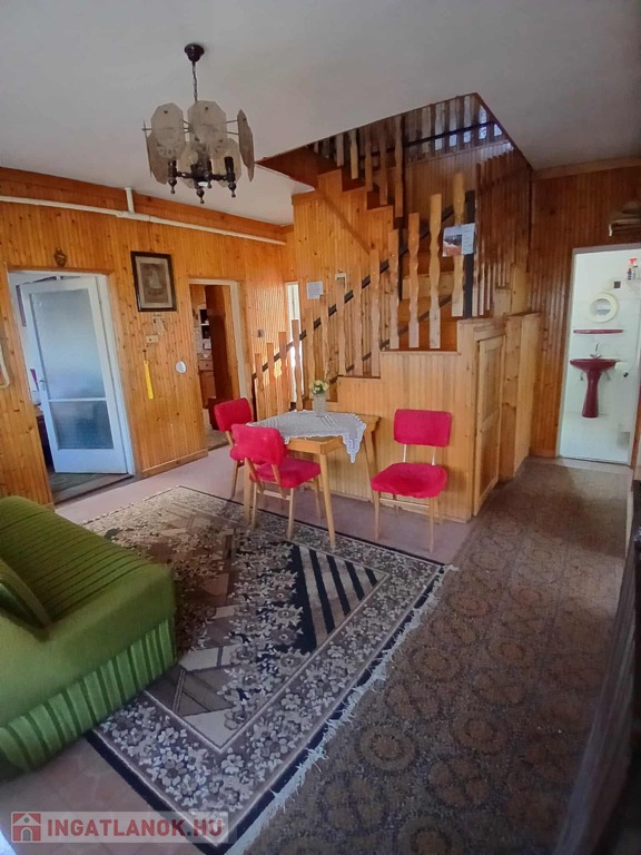 Burkolatok: A szobákban kiváló állapotú, megkímélt parketta található (nem recseg, nincs szét nyílva), a többi helyiségben csempe. A nappali, az emeleti nappali és a konyha oldalait lambéria borítja, ami otthonos hangulatot ad.