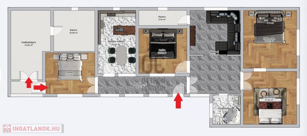 Az ingatlan a mellette, valamint a mögötte található telekkel együtt eladó!
