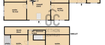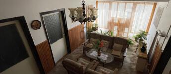 Az 1980-ban épült lakóház helyiségei: 5 hálószoba, 2 nappali, közlekedők, kettő külön WC, fürdőszoba, étkező, konyha, tárolók, kamra, terasz, erkély, veranda