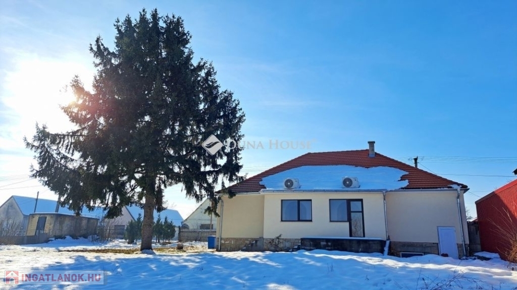 Eladó felújított családi ház Töttösön napfényes terek, azonnal költözhető állapotTöttösön eladó egy 130 m²-es lakóterű, 1300 m²-es telken fekvő, három éve teljes körűen felújított családi ház, amely világos tereivel és átgondolt kialakításával azonnal otthonérzetet ad.Az ingatlanra a napfényes, tágas belső terek jellemzőek. A felújítás során födémszigetelés, új nyílászárók és redőnyök kerültek beépítésre, így a ház komfortos és jól fenntartható.A fűtésről klímaberendezések gondoskodnak, a fürdőszobában törölközőszárítós radiátor található. A ház központi részében kandalló kialakítására is van lehetőség, ami tovább fokozhatja az otthon melegségét és hangulatát.Az elosztás praktikus és jól élhető:2 hálószoba, nappali, konyhaétkező, kamra, gardrób, fürdőszoba WC-vel, előtér, valamint egy napfényes télikert, ahonnan csodás kilátás nyílik a kertre és a szomszédos dombra.A tágas udvarban ásott kút is rendelkezésre áll, a telek jól használható, ideális kertészkedésre vagy pihenésre. Az ingatlan azonnal költözhető, így új tulajdonosa késedelem nélkül birtokba veheti.Ez a ház kiváló választás mindazok számára, akik nyugodt vidéki környezetben, mégis igényesen felújított, világos otthont keresnek.Kérdés esetén, illetve megtekintésért keressen bizalommal.___Renoviertes Einfamilienhaus in Töttös zu verkaufen helle Räume, sofort bezugsfertigIn Töttös steht ein 130 m² großes Einfamilienhaus auf einem 1.300 m² großen Grundstück zum Verkauf, das vor drei Jahren umfassend renoviert wurde. Die Immobilie überzeugt durch helle, großzügige Räume und eine durchdachte Raumaufteilung, die sofort ein Gefühl von Zuhause vermittelt.Im Zuge der Renovierung wurden eine Deckendämmung, neue Fenster und Türen sowie Rollläden eingebaut, wodurch das Haus komfortabel und energieeffizient ist.Die Beheizung erfolgt über Klimageräte, im Badezimmer befindet sich ein Handtuchheizkörper. Im zentralen Bereich des Hauses besteht zudem die Möglichkeit zum Einbau eines Kamins, der dem Zuhause zusätzliche Wärme und Atmosphäre verleihen kann.Die Raumaufteilung ist praktisch und gut nutzbar:2 Schlafzimmer, Wohnzimmer, Küche mit Essbereich, Speisekammer, Ankleidezimmer, Badezimmer mit WC, Vorraum sowie ein sonniger Wintergarten, von dem aus sich ein wunderschöner Blick in den Garten und auf den benachbarten Hügel eröffnet.Im großzügigen Hof befindet sich ein Brunnen, das Grundstück ist vielseitig nutzbar und eignet sich ideal zum Entspannen oder für Gartenarbeit. Die Immobilie ist sofort bezugsfertig.Dieses Haus ist eine ideale Wahl sowohl als dauerhafter Wohnsitz als auch als ruhiges ländliches Zuhause.Bei Fragen oder für eine Besichtigung können Sie mich gerne kontaktieren.