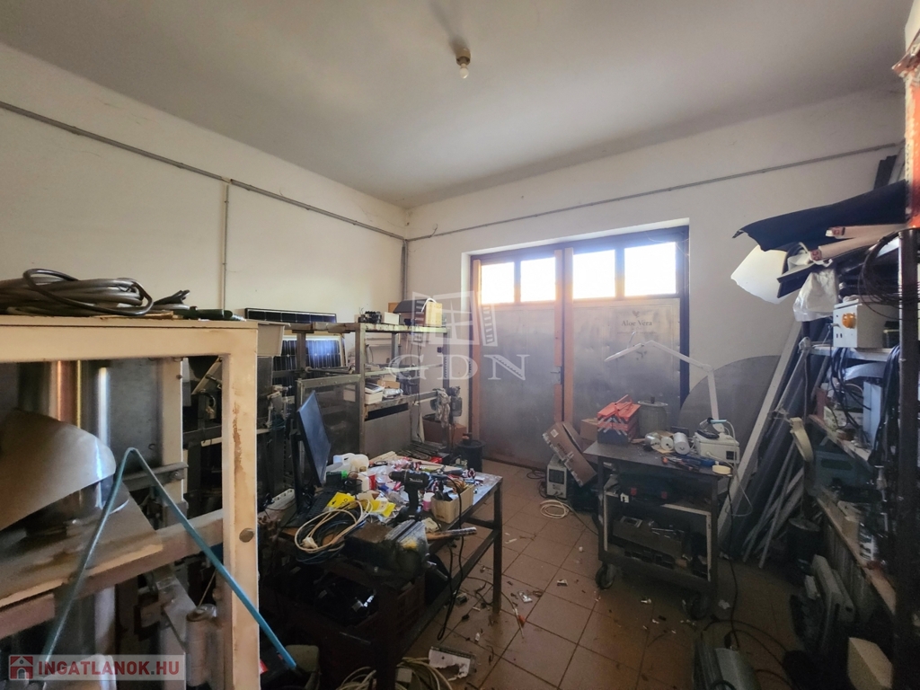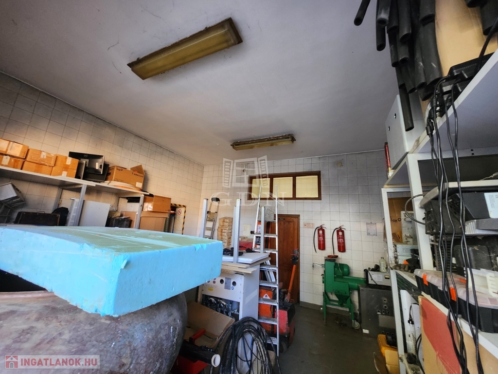 2. Ipari üzemcsarnok 1998-ban épült, beton alapzattal, 30-as tégla falazattal, mely jelenleg is használatban van. 3 fázisú ipari áram, víz, gáz, csatorna, rendelkezésre áll. Az épület kifejezetten ipari üzemnek készült, nagy bejárati ajtókkal van ellátva, hogy targoncával is be lehessen menni. Az épület állapota jó, szükség szerint könnyen átalakítható. Az épületben iroda, öltöző, zuhanyzó és WC is található.