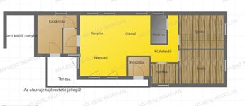 -3 szoba, 49m2-es amerikai konyhás nappali és étkező, fürdőszoba, wc, kazánház, kamra.