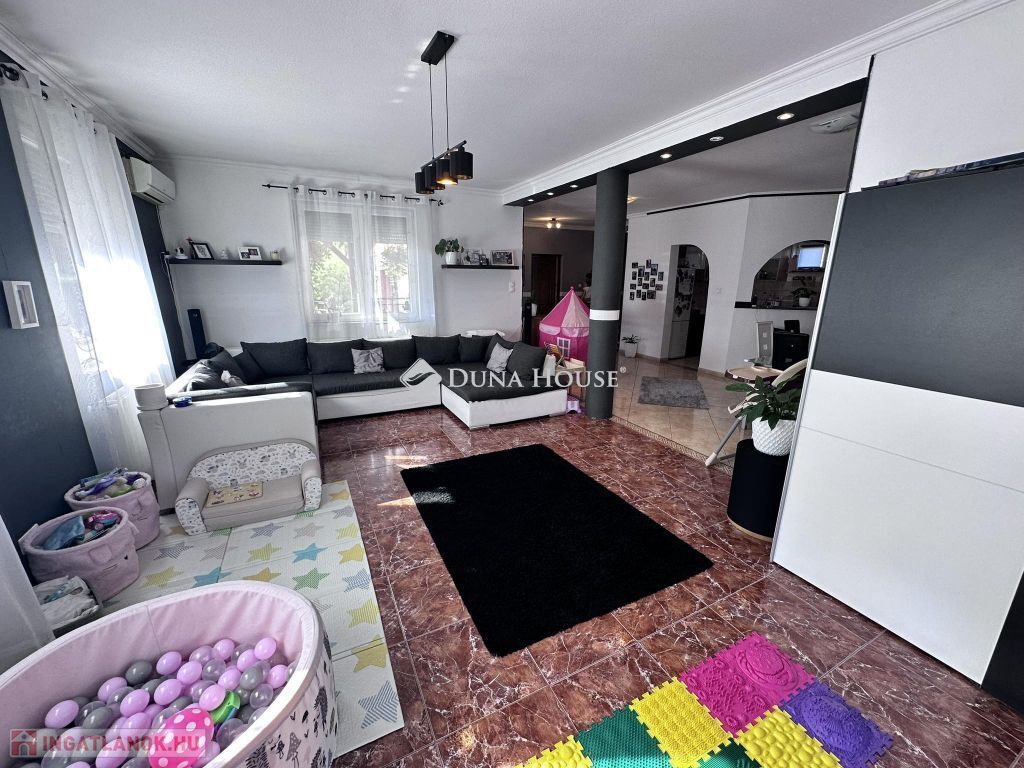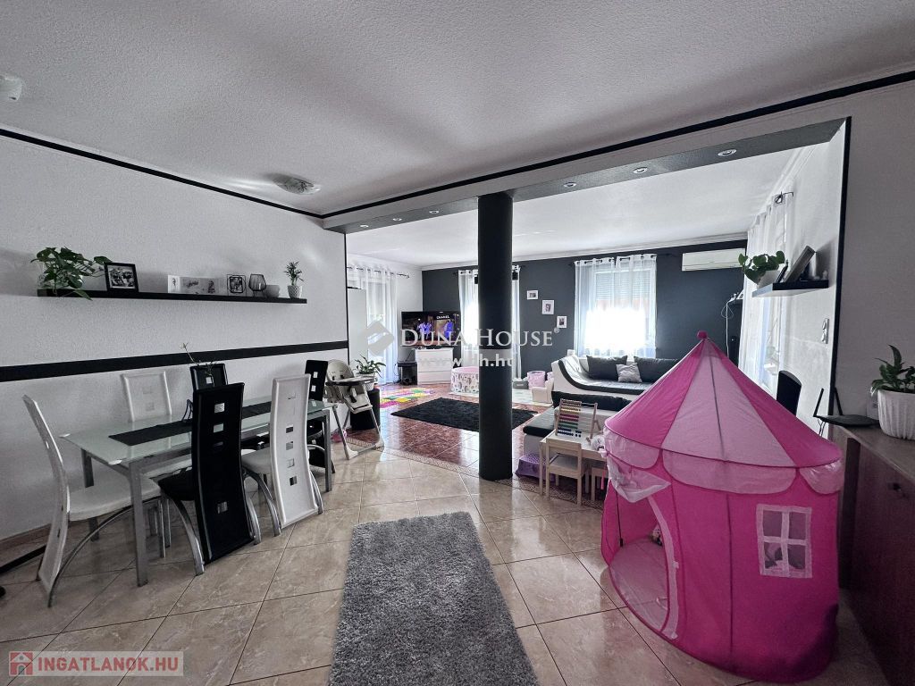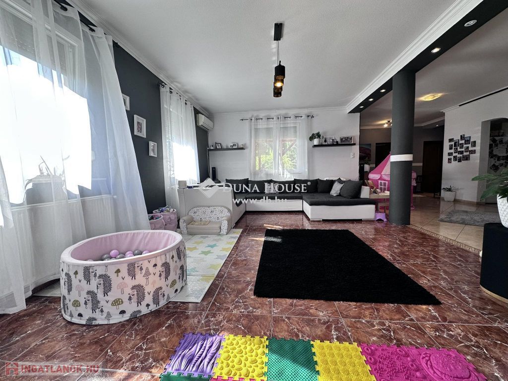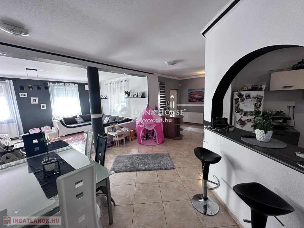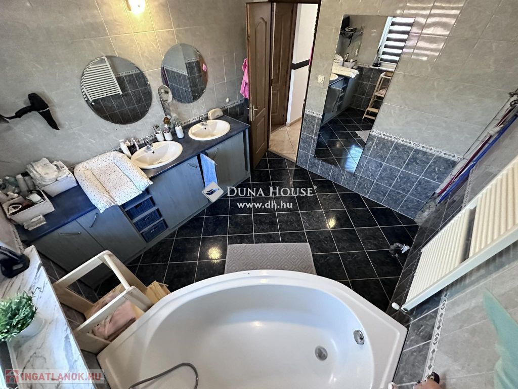 Az otthon egy 622 nm -es összközműves telekre épült 2003-ban Ytong falazattal, Bramac bretoncserép fedéssel. A földszinti lakrész 140 nm-es melynek belső elosztása előszoba, nappali, konyha, étkező, wc, fürdő, két hálószoba, két terasz, garázs, kazánház-mosókonyha-wc. A fenti lakrész elosztása amerikai - konyhás - nappali, kamra, fürdő, wc, kazánház, két külön nyíló szoba, gardrób, közlekedő, erkély. Mindkét lakrész fűtését és melegvíz ellátását gáz cirkó biztosítja. A lenti részen padlón és lapradiátorokon keresztül történik a hőleadás. Az emeleten lapradiátorokon keresztül történik a fűtés. Az otthont eddig két testvérpár lakta. De nagycsaládosok számára is tökéletes választás lehet ez a napfényes tágas kedves kis ingatlan. A kert parkosított melynek öntözését öntözőrendszer biztosítja. A parkosított telek egyik sarában sütögető és bográcsolló helyiség került kiépítésre. Így a család és a barátok kedvükre sütögethetnek és pihenhetnek ebben a szép zöld intim környezetben. A garázson lévő ajtó és a telekre vezető nagykapu elektromos. Az ingatlan hűtő-fűtő klímával ellátott.