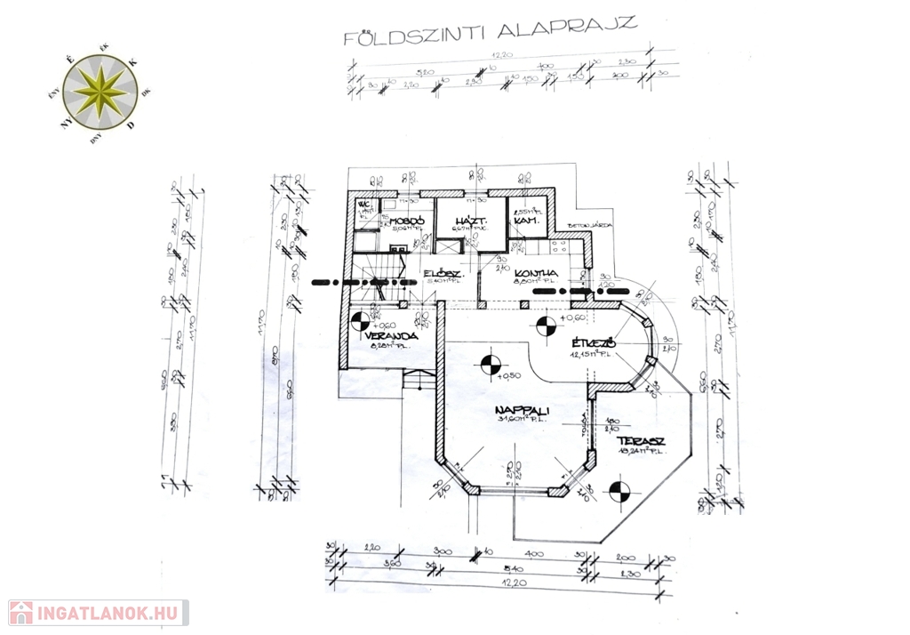 Nyílászárok: 4 kamrás műanyag Rehau, egyedi igény szerint készített dupla üveggel ellátott fa , valamint redőnnyel és szúnyoghálóval felszereltek. Kétszárnyas teraszajtó, hőszigetelt, biztonsági aluredőnnyel.