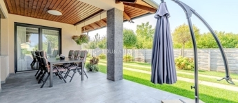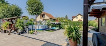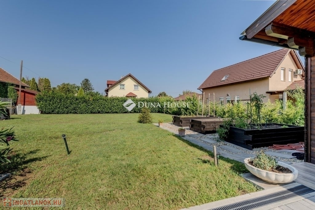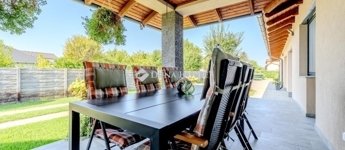 A házat körülölelő kert igényesen parkosított, rendezett, intim, ideális pihenésre, családi és baráti összejövetelekre.