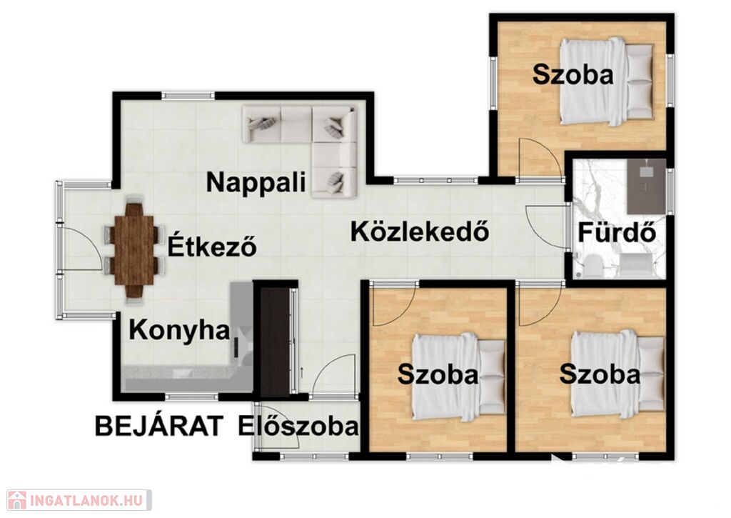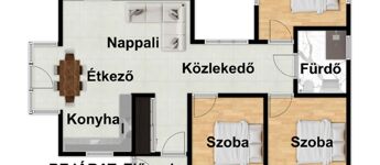 -54m2-es társasházi lakás(2 lakószoba, fürdőszoba wc-vel,konyha, közlekedő, nappali és egy gardrób)