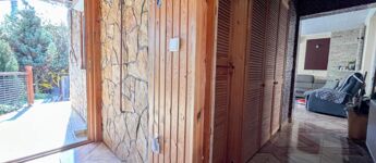 Két autó parkolására is alkalmas, fedett garázs, előkert, családi vagy társasági életre alkalmas oldalkert kerti konyhával, sütőgetővel.