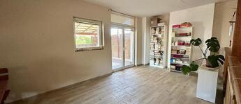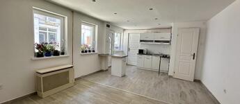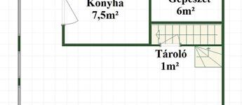Az udvarban található külön lakás elrendezése: egy szoba, fürdőszoba, egy amerikai konyhás nappali és egy spejz. Fűtése konvektoros, nyílászárói dupla üveges thermo műanyag ablakok, szigetelése szintén 5 cm hungarocell.