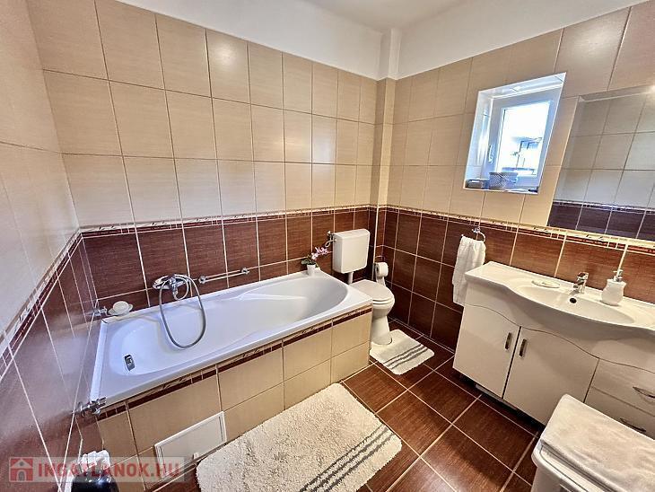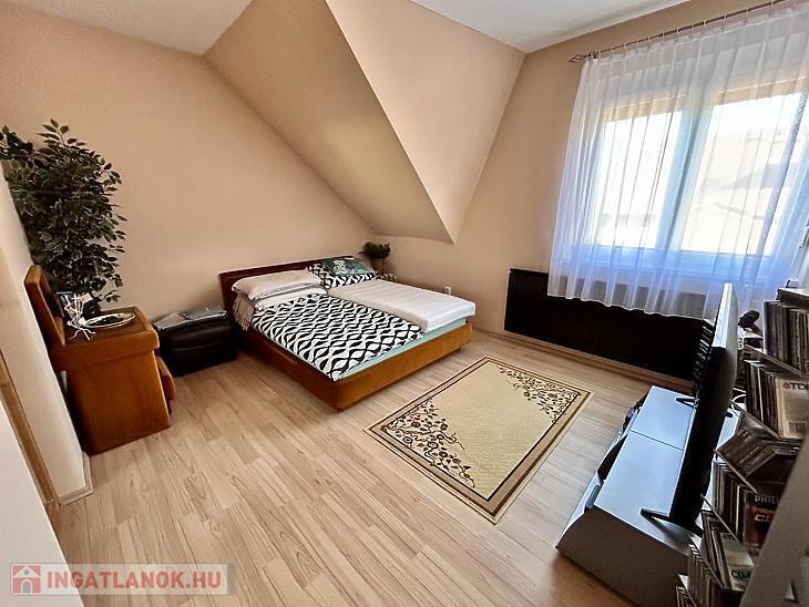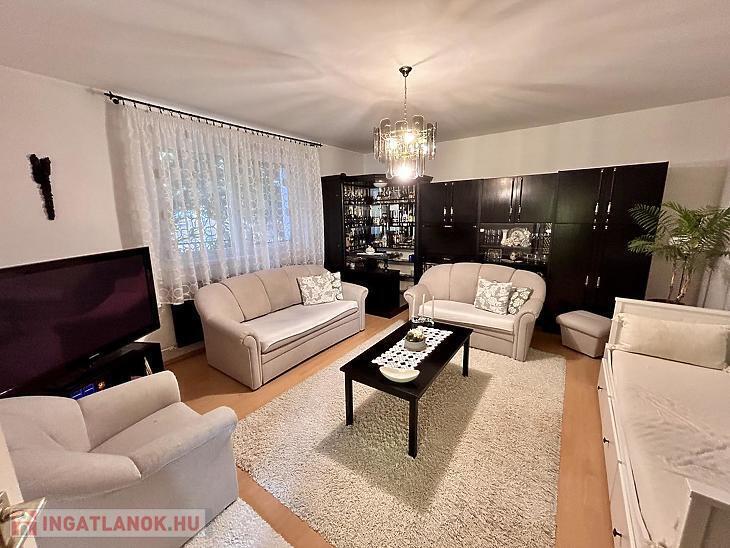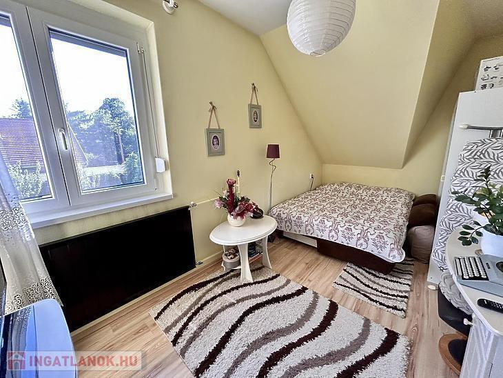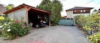 Az ingatlanhoz tartozik egy 48 négyzetméteres garázs, mely alatt egy szintén 48 négyzetméteres pince is helyet kapott – kiváló lehetőség tárolásra vagy akár műhely kialakítására. Az udvaron két férőhelyes fedett kocsibeálló biztosítja a kényelmes parkolást, a tágas kert pedig ideális lehet családi programokhoz, kerti sütögetéshez vagy akár egy saját veteményes kialakításához is.
