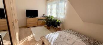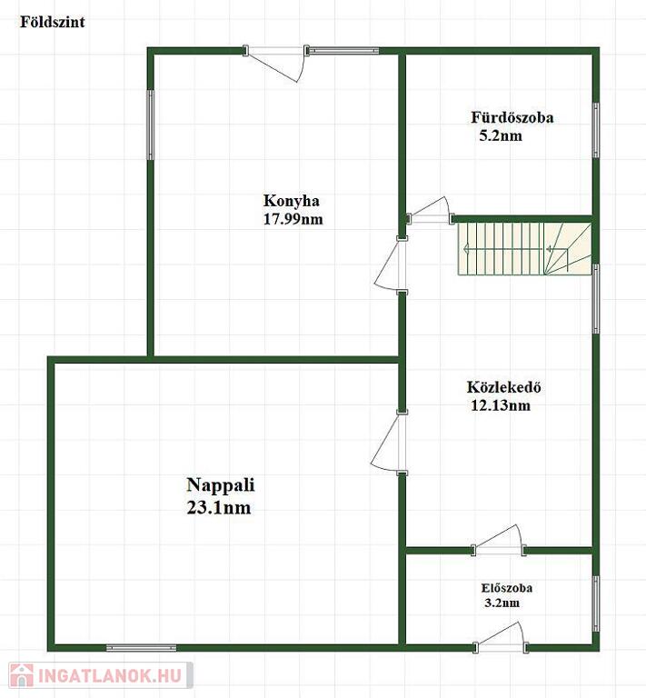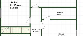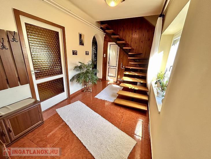 A földszinten egy előszoba, egy közlekedő, egy tágas konyha és nappali, valamint egy fürdőszoba WC-vel található. Az emeleten három külön nyíló szoba kapott helyet, továbbá egy gardrób és egy második fürdőszoba WC-vel. A ház belső terei világosak, tágasak és jól átgondolt elrendezésűek, így ideális akár nagyobb család számára is.